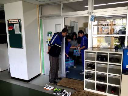 2、3年生がおしぼり加工のお仕事に取り組みました。ていねいに折りたたんでいます。
