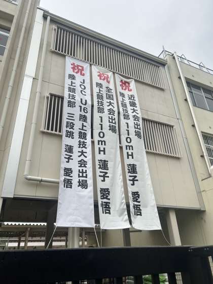 近畿大会、全国大会、そして今大会の垂れ幕をPTAの方々に作成していただきました。