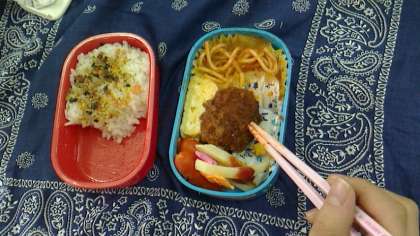 本来ならば池田市の五月山で食べているだろう、手作り弁当をにぎやかに食べていました