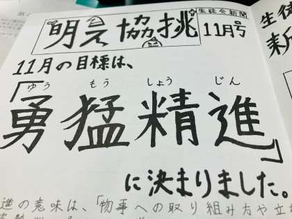歌島中学校11月の目標は、『勇猛精進(ゆうもうしょうじん)』となりました。