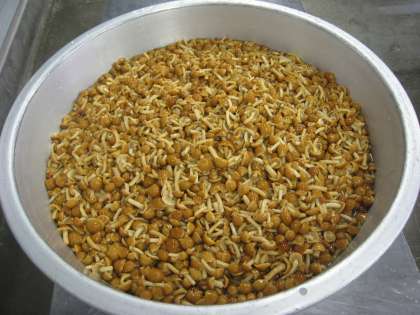 給食でなめこは年1回11月のみ使用できるきのこです。なめこは日本原産で、全体が粘質におおわれているのが特徴で「滑らっ子(ヌメラッコ)」と名付けられていたものが訛(なま)って「なめこ」になったと言われています。今日はみそ汁の具に使用したので、とろっとした食感のよい仕上がりとなりました。
