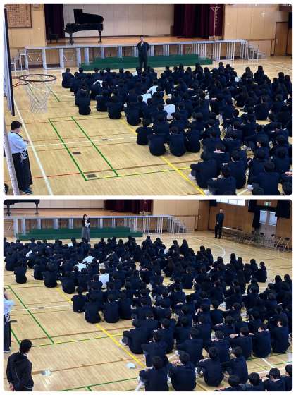「今日のリハーサルは指揮者や伴奏者の人たちは、とても緊張したと思います。長い時間をかけて練習してきくれています。来週8回目の授業があります。8回目の授業は指揮者と伴奏者、パートリーダーの希望と要望に応えるという内容になっています。音楽の授業で何をやってきたのか、今日のリハーサルでどんなことを感じたのかを考えて本場までの練習に取り組んでほしいと思います。みなさんには合唱コンクール本番で歌い終わった後の景色を味わってほしくて、一緒に練習をしてきました。当日を楽しみにしています。」