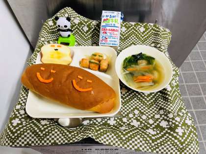 給食で押麦は2001年初使用で、今年で24年になります。押麦は大麦を精白し、加熱後にローラーで平たく圧したもので、消化をよくするために考えられたものです。腸内環境を整えてくれる食物繊維が豊富(精白米の約15倍)です。給食では本日のように汁物の具、マカロニの代わりに押麦を使用したグラタン(2月に登場予定)もあり、押麦独特の食感のよさを味わえ、人気があります。