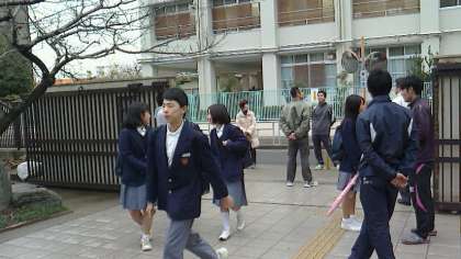 12月25日(金)今日は終業式です。年末にしては温かい朝を迎えて、生徒たちの服装も防寒具の人は少ないようでした。2学期最後の登校風景です。