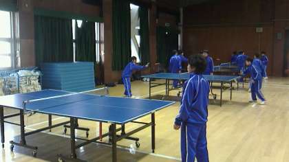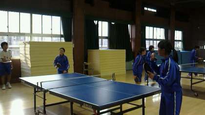 講堂では、男女の卓球部が熱のこもった練習をしておりました。