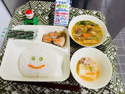 今日は「鶏肉の甘辛焼き、みそ汁、大根の煮もの、焼きのり」の」組み合わせで、ご飯がよく進みました。