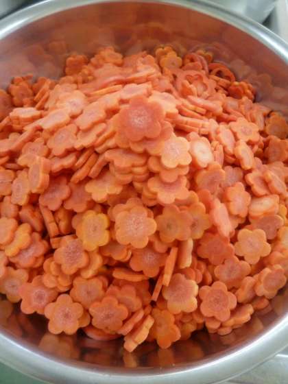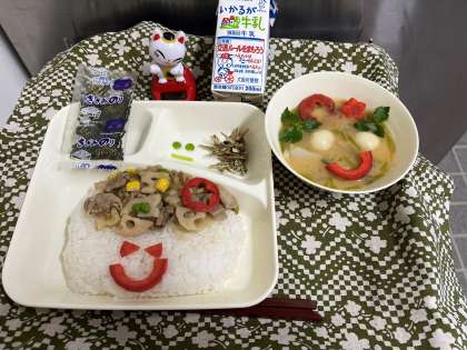 「ぞう煮」は、なにわの伝統野菜でもある「金時にんじん(生産量1位の香川県産)」を使用し、白玉もち、みつば等の具に白みそベースで仕上げた関西風です。🌺型のラッキーにんじんもあり、お楽しみもありました!