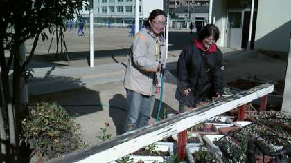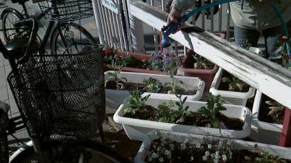 元気アップ事業の2人のコーディネーターさんが、花の水やりをしてくださっていました。