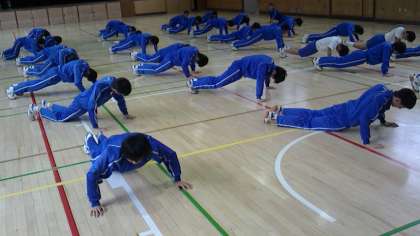 生徒達は指示に基づき静かに黙々とメニューをこなし、ゴール回数を伸ばしていました。生徒達のキビキビとした動きが印象に残りました。