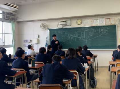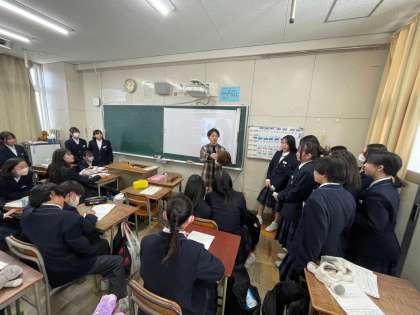 実際の体験するようすを見せていただいたり、今まで知らなかったお話しを聞かせてもらったりするなど、生徒もメモをとりながら真剣に向き合っています。