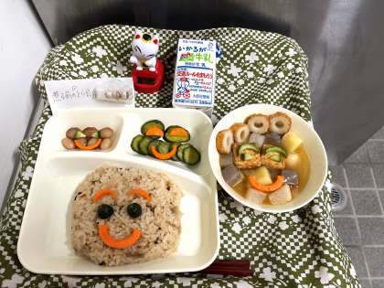 とら豆(乾物5.9kg、生産量第1位の北海道産)を熱湯に60分間浸し、砂糖、しょうゆ等で味付けし、弱火で90分煮た後、火を切り、30分間味を含ませました。ふっくらと美味なとら豆の煮ものとなり、おいしくいただくことができました(1人約7粒)。とら豆の煮ものは2003年5月初登場なので、今年で23年になります。