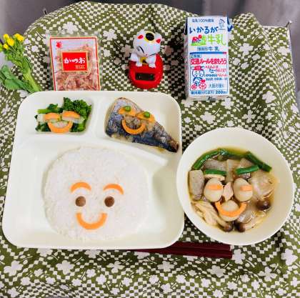菜の花(徳島県産18.2kg〈104束〉)とはくさいを材料におひたしにし、食べる時にかつおぶしをかけて早春の季節感を楽しみました。