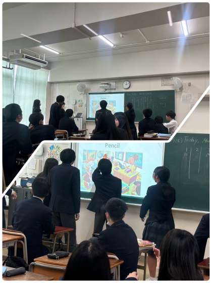 単語をタッチするゲームをみんなでした後、洋楽を聞いたり、先生からの英語の手紙を読みました。