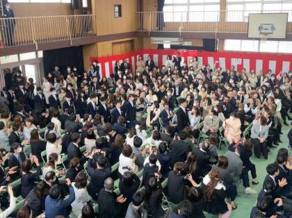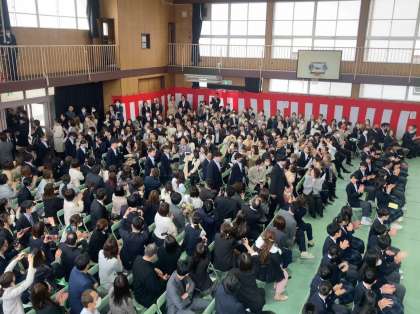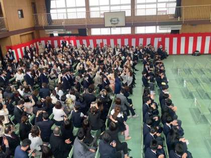 生徒が体育館に入場します。1組、2組、3組の様子です。