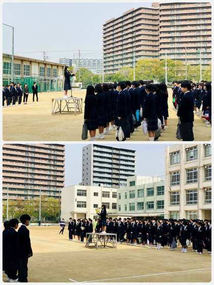 始業式では新転任の教職員による挨拶に生徒たちが拍手で応えてくれました。