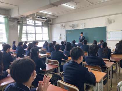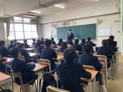 8日は始業式・対面式終了後、各学年・各学級で担任挨拶やオリエンテーション、プリント配付などが行われました。2年生の教室の様子を紹介します。