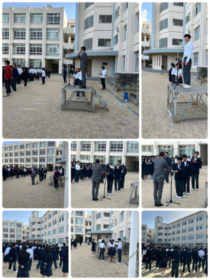 校長先生も話をしましたが、今日はカバンを持って集会に参加(遅刻)した生徒が少なかったです。今後も意識して登校してくれることを願います。保護者の皆様、サポートのほどよろしくお願いいたします。