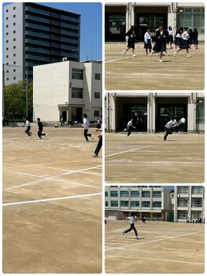 歌島中学校の生徒は昼休み運動場で走り回る生徒が多数いて元気です。