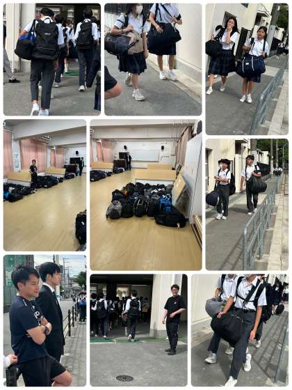 さて、3年生は日曜日から修学旅行ですので、旅行バッグの中学生が続々と登校しました。