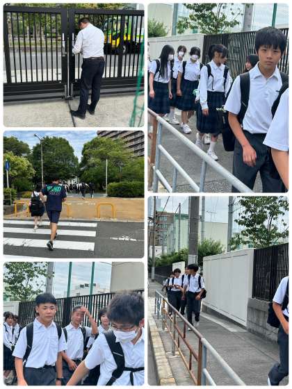 教頭先生が少しでも早く駅に行けるように途中から緑陰道路側の門を開場されていました。