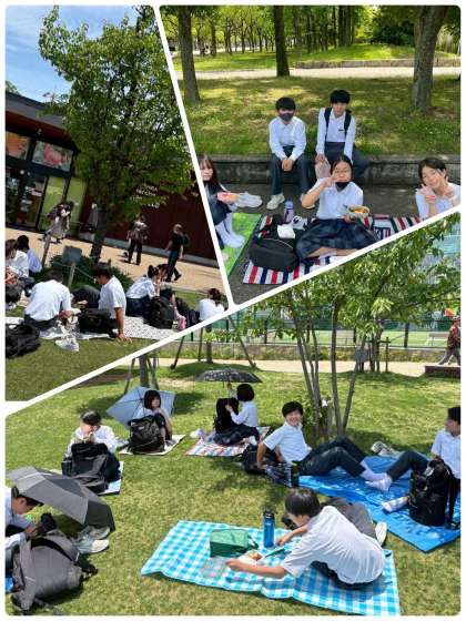 こんないい天気で、『てんしば』で食事って最高でしょ。 昼食を用意してくれたおうちの人に感謝!!