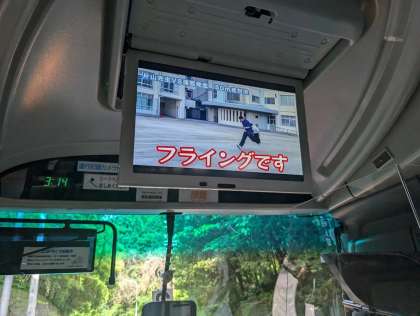 生徒たちはバスレクムービーで盛り上がっています。元気です!!