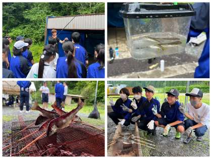 魚釣りから始まり、自分で釣った魚を焼いています。 魚がおいしそうです!