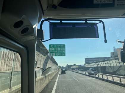 バスは阪神高速を通行中
