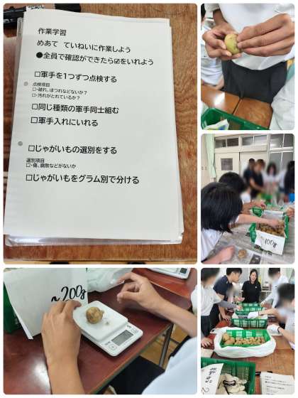 後半は収穫したじゃがいもの選別と袋詰めの作業をしました。