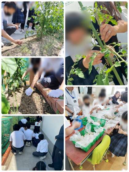 栄養のある土に雑草も増えてきていました。暑い中でしたが今日はみんなで雑草抜きをしました。トマトの実もつきだしています。収穫が待ち遠しいですね。