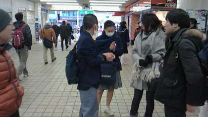 今朝7時20分頃の塚本駅での生徒達の様子です。
