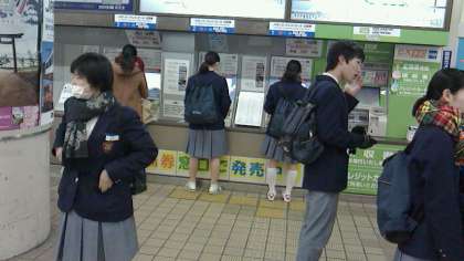生徒達は先生の顔を見て安堵の表情を浮かべながら会話を交わし、切符の購入後それそれが改札口をとおり、試験会場の高校へと向かっていきました。