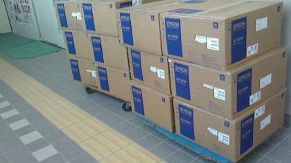 今回大阪市教育委員会の予算で購入した、液晶プロジェクター(エプソンEB−585W)12台をいただきました。