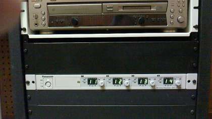 本日納品があり、放送器材のラックに新しいワイヤレスチューナーを組み込んでいただきました。(ラック下部の横長の白い機材です。) ワイヤレスマイクが4台使えるようになりました。卒業式・入学式に間に合い喜んでいます。今後いろいろな行事等にご利用ください。