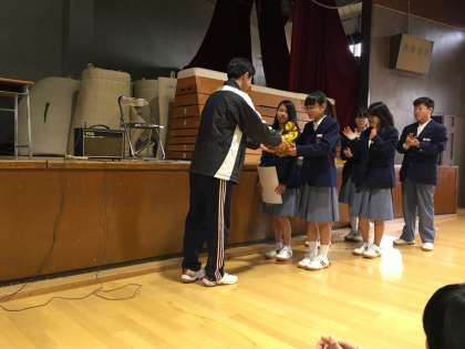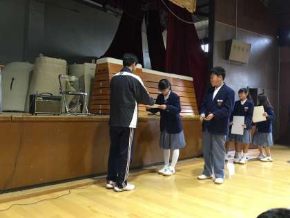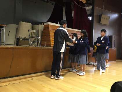 学年主任の田中先生から、「今回の取り組みを通して、日頃勉強が苦手な人が一生懸命暗記に取り組んたり、クラスの中で勉強を教えあったりする姿が見られたのがとてもよかった。明日からの期末テストに生かしてほしい」とお話がありました。