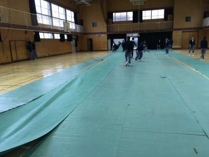 そのため、1時間目に1年生1組と7組の男子で会場準備をしました。