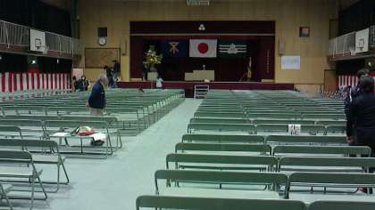 作業の進行とともに、卒業式会場らしく厳かな雰囲気が出てきました。今にも式が始まるかの如くに。