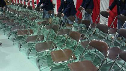 体育館の収容人数が生徒の人数には遠く及ばないため、1・2年生はほんの一部の生徒しか式に参加できません。せめて会場の雰囲気だけでも今日肌で感じ取ってください。