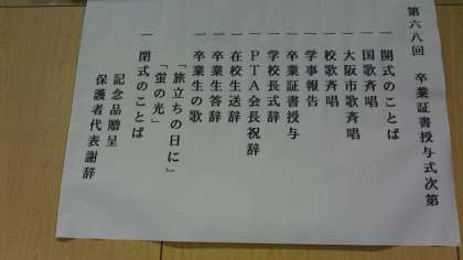 3月11日(金)「第68回卒業証書授与式」を体育館で行いました。