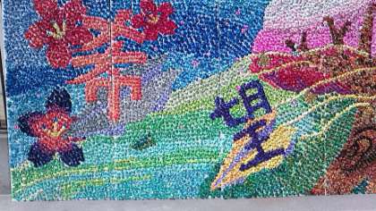 1年生の制作作品「満開の桜」とともに「希望」が祝福してくれました。