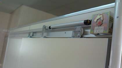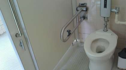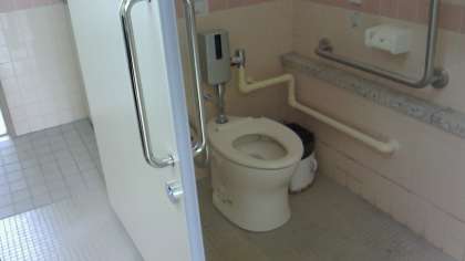 扉はスライド式に可動するとびらで、アシスト構造になっており軽い力でのスムーズな開閉ができます。身障者ブースは広くゆったりしています。