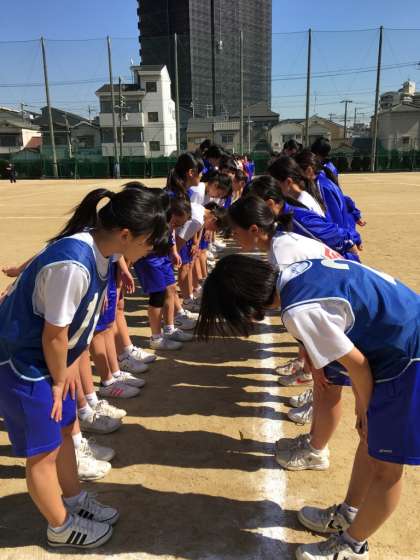 挨拶の様子、各クラスで自主的にやっていた円陣の様子をご紹介します。