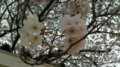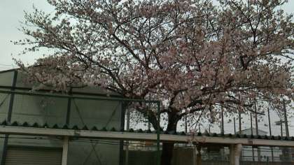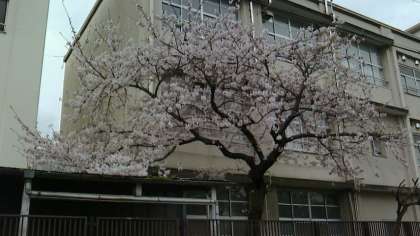 プール横の桜は正門の桜と同じような、開花具合です。枝によって見事な枝振りもありますが全体的にはこれからです。