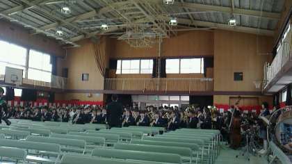 会場では吹奏楽部の演奏が奏でられ、今まさに式典が始まろうとしています。