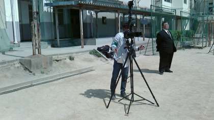 4号館前のグランドに雛壇を2か所に設けての、クラスごとの撮影です。高低差を利用して4段に並んでいました。