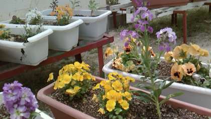 生徒会を中心とした生徒達が、正月前に植えた玄関のプランターでは、色とりどりの花が咲いています。昨日の写真ですが、生徒をはじめ訪れた人の目を、楽しませくれています。