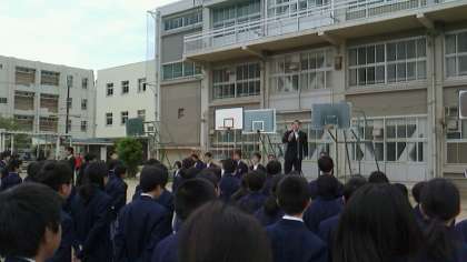 全校集会では校長先生から、あいさつをしっかりするようにとのお話がありました。