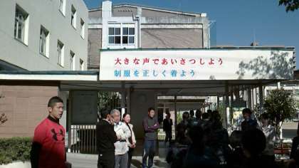 4月20日(水)8時15分ごろの様子です。生徒達はチャイムすれすれに登校するのではなく、余裕をもって登校するようにと指導を受けてます。8時10分〜20分頃に、たくさんの生徒達が「おはようございます」と、声を出してあいさつしながら正門を通り抜けていきます。