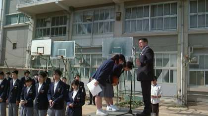 全校集会に先立ち、部活動の表彰がありました。