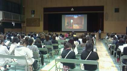 説明会では村上学年主任より、液晶プロジェクターを利用した映像での説明でした。持ち物等も詳しく説明がありました。